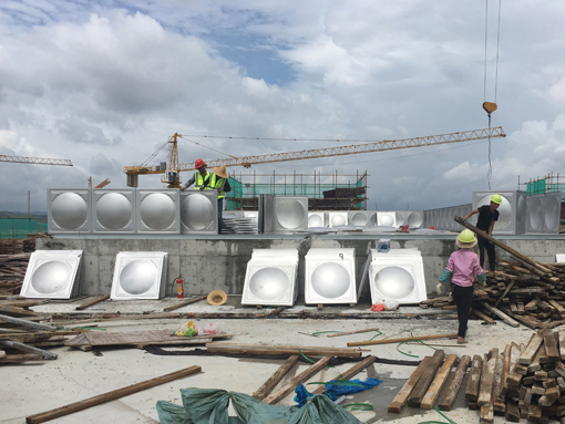 • 水箱安裝完畢,焊縫經酸洗、鈍化處理,提高了水箱的耐蝕能力,水箱自安裝起外形穩定,永不滲漏